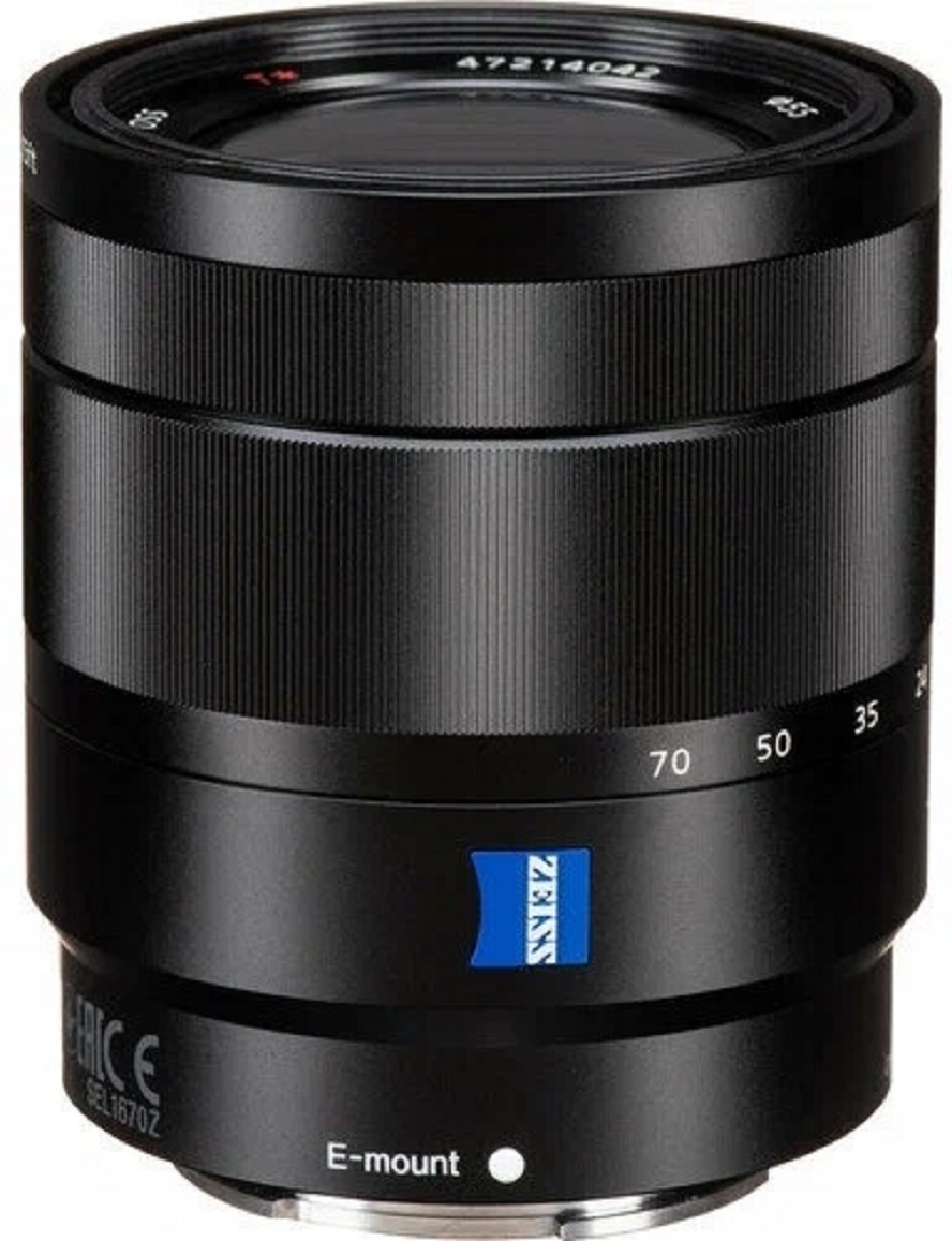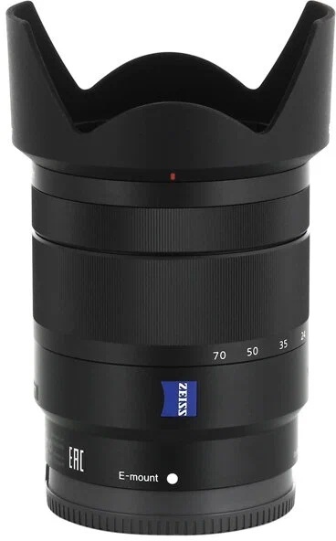 Объектив Sony Vario-Tessar T* E 16-70mm F4.0 ZA OSS снабжен стандартным зумом среднего диапазона. Оптические элементы изготовлены профессиональной линейкой Zeiss. В сочетании с высоким уровнем диафрагмы F4 можно добиться желаемой детализации изображения. Автоматическая фокусировка поможет найти подходящие настройки. Функция стабилизации съемки убережет от эффекта "тряски" с провоцированием на размытость объектов. Модель Sony Vario-Tessar T* E 16-70mm F4.0 ZA OSS производит изображение с оптимальным уровнем цветности, контрастов и резкости. Это достижимо благодаря показателям углов обзора от 23 до 83 градусов. По желанию выстраивается режим переменного фокуса диапазоном от 16 до 70 мм. На корпусе присутствует выемка для возможности работы со светофильтром диаметром 55 мм. Бленда модели ALC-SH127 поможет избежать нежелательных бликов и засвечивания. Габариты объектива составляют 66.6х75 мм. Вес – 308 г.